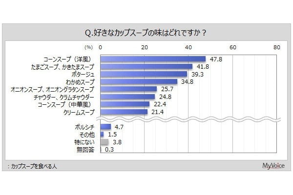 カップスープの好きな味ランキング。1位は「コーンスープ(洋風)」、若い...