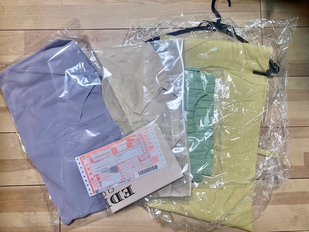 今回レンタルしたアイテムは、ややほこりのような匂いのするアイテムや、梱包状態によってシワが多少気になるアイテムがありました。