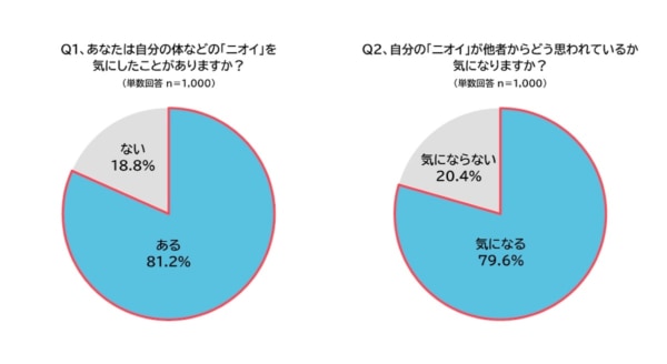 さらに、「自分のニオイが他人にどう思われているか気になるか」という問いに対しても、79.6%が「気になる」と回答しています。