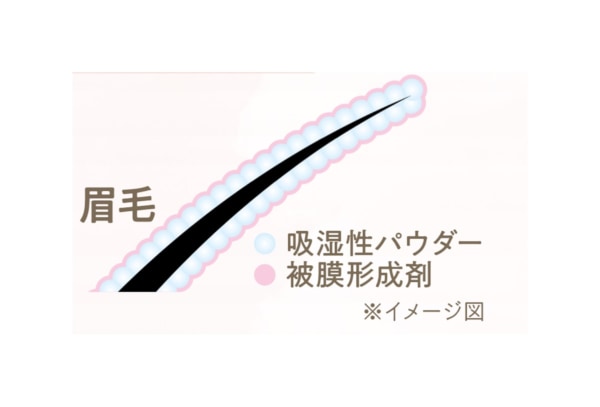 やわらかい膜で眉毛1本1本をコーディングするので、眉毛にムラなく付き、しっかり発色。吸湿性パウダー配合で、油分のベタつきを抑え乾いてもふんわり質感のままエアリーな仕上がりに。