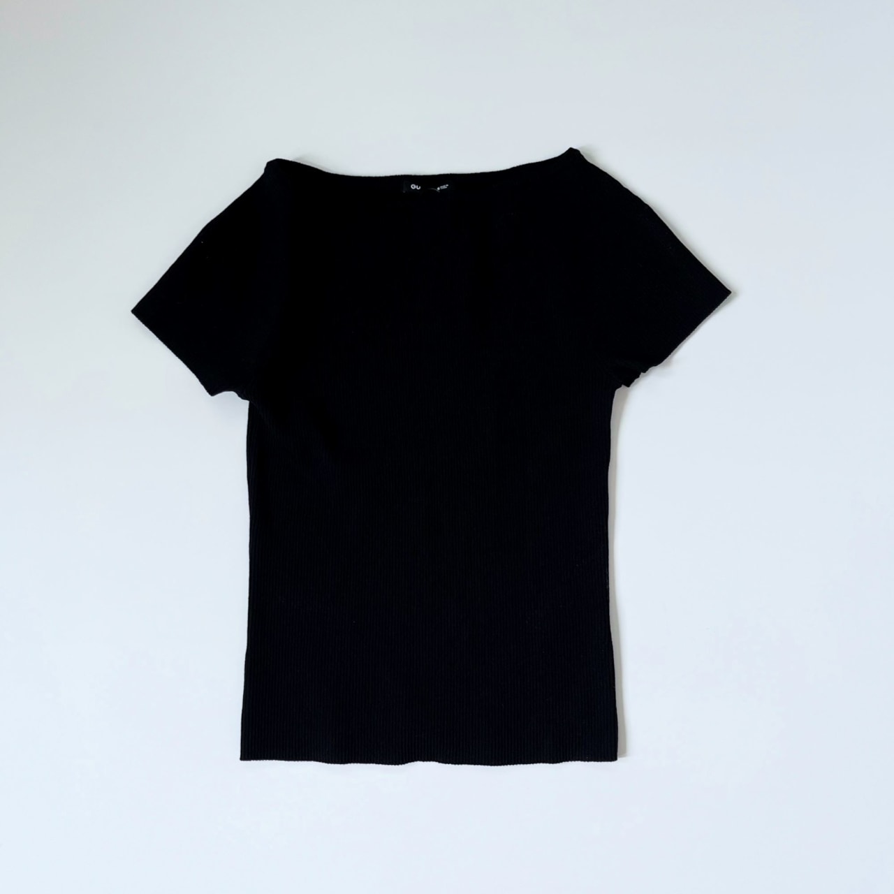 首周りをすっきりきれいに見せてくれて、着るだけで鎖骨美人に。縦のリブが二の腕も華奢に見せてくれます。