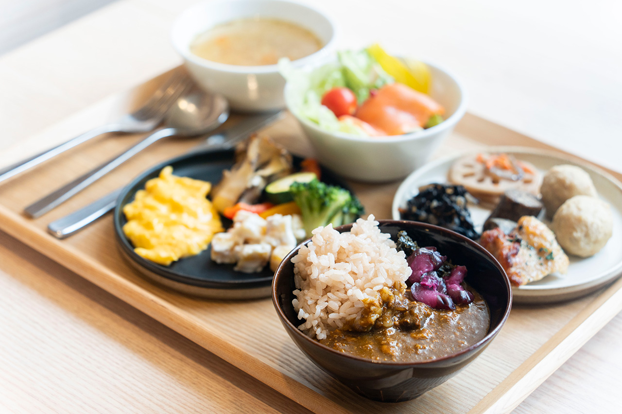 滞在の最後はおいしい朝食を。1階の「CHAYA 1899 TOKYO」では静岡産抹茶を使用した「抹茶パン」や茶葉を練りこんだ「お茶ソーセージ」など、「お茶」にちなんだ料理をビュッフェ形式で楽しめます。