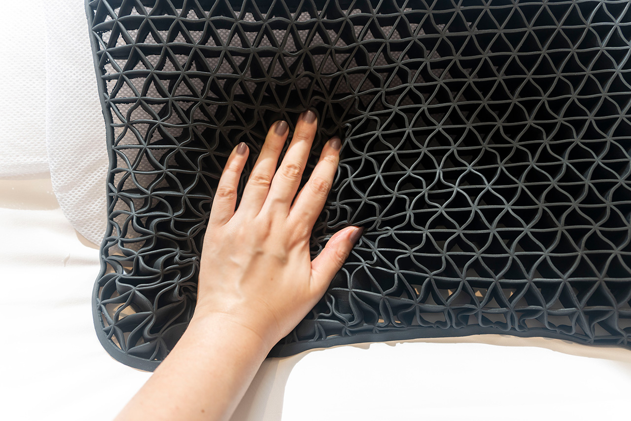 「ヒツジのいらない枕―調律―」は高品質素材 TPE と三角格子構造で圧力を分散し、頭をサポートしてくれる枕。むにゅっと柔らかく、優しくフィットしてくれます。それに加えてクリスタルファイバーが3層あり、自分好みの高さに調整が可能。私は2層入れる高さがちょうどよく、フィット感もベストで、噂通りヒツジを数える間もなく入眠できました。これは欲しい……!
