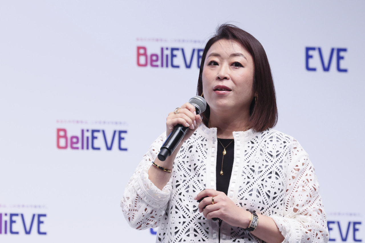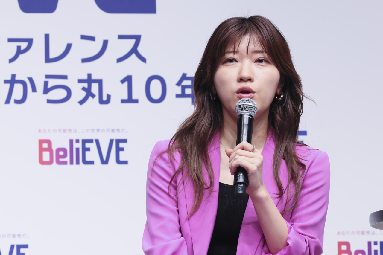 締めくくりとしてアンバサダー・メンターとしての抱負を聞かれた二人。「より多くの女性がキャリアを信じ、自分らしく頑張れるようになったらうれしい」と菜々緒さん、「普段頑張っている人にこそ、このプログラムに頼ってみてほしい」とヒコロヒーさん。最後は元島さんや、2部でトークした新井さん、小坂さんが「BeliEVEカラー」の衣装に身を包んだ二人を囲んで笑顔を向け、会場は温かい拍手に包まれました。