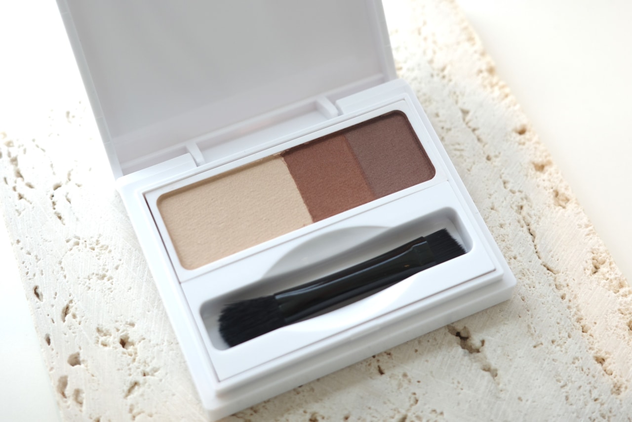 3色入りのパレットで、一番明るいカラーの面積が大きい設計も特徴的。シェードカラーで眉頭と鼻根の“美眉ゾーン”をつなげることで目周りの立体感が美しく見えるという、かじえりさんの美眉メソッドを簡単に再現できるリアルな影色が多い配分になっています。