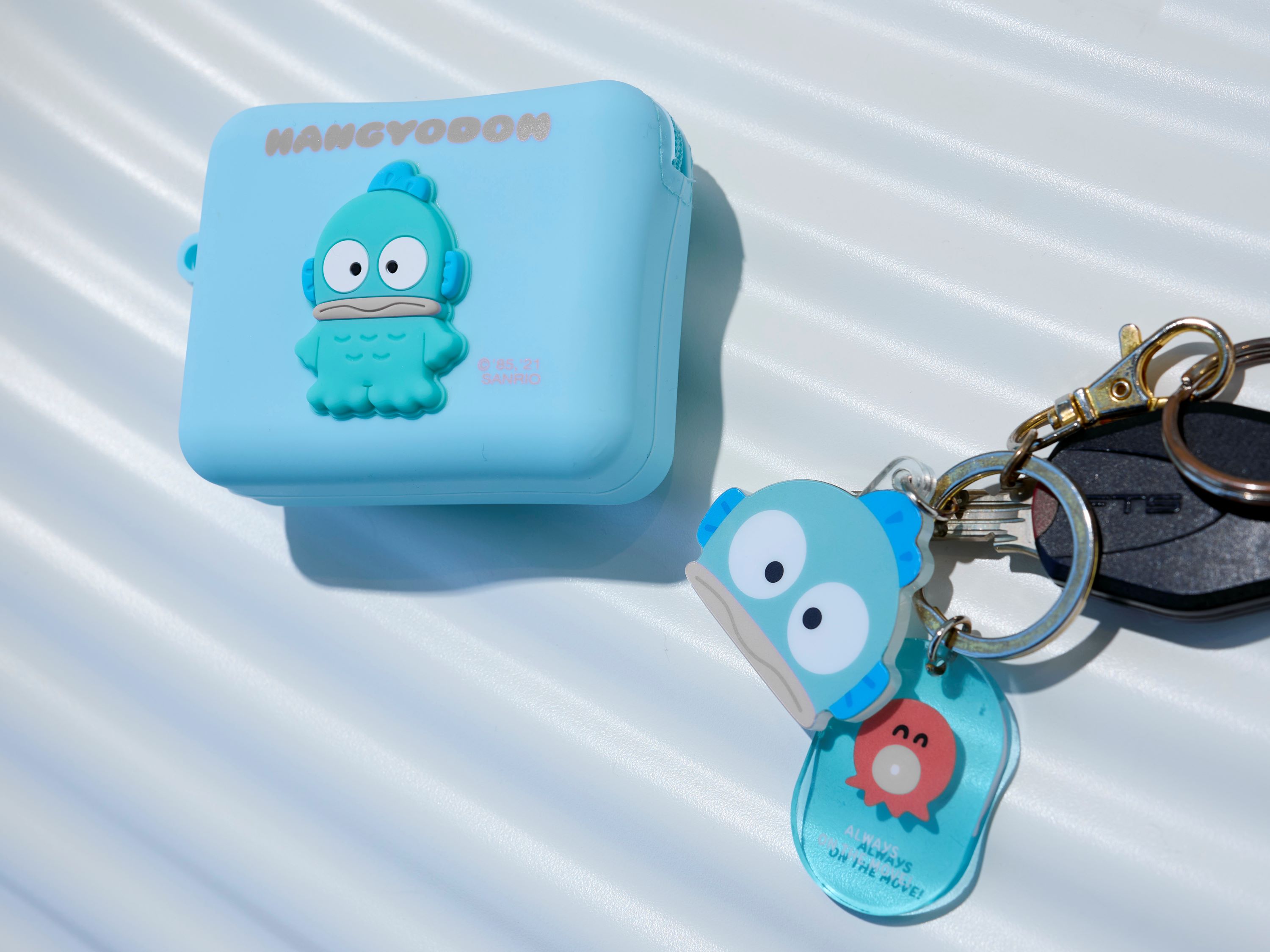 キーケースやイヤホンケースにも「ハンギョドン」が。オフィスで働いている時にも、アクキーやハンギョドンを眺めながら癒されているのだそう。