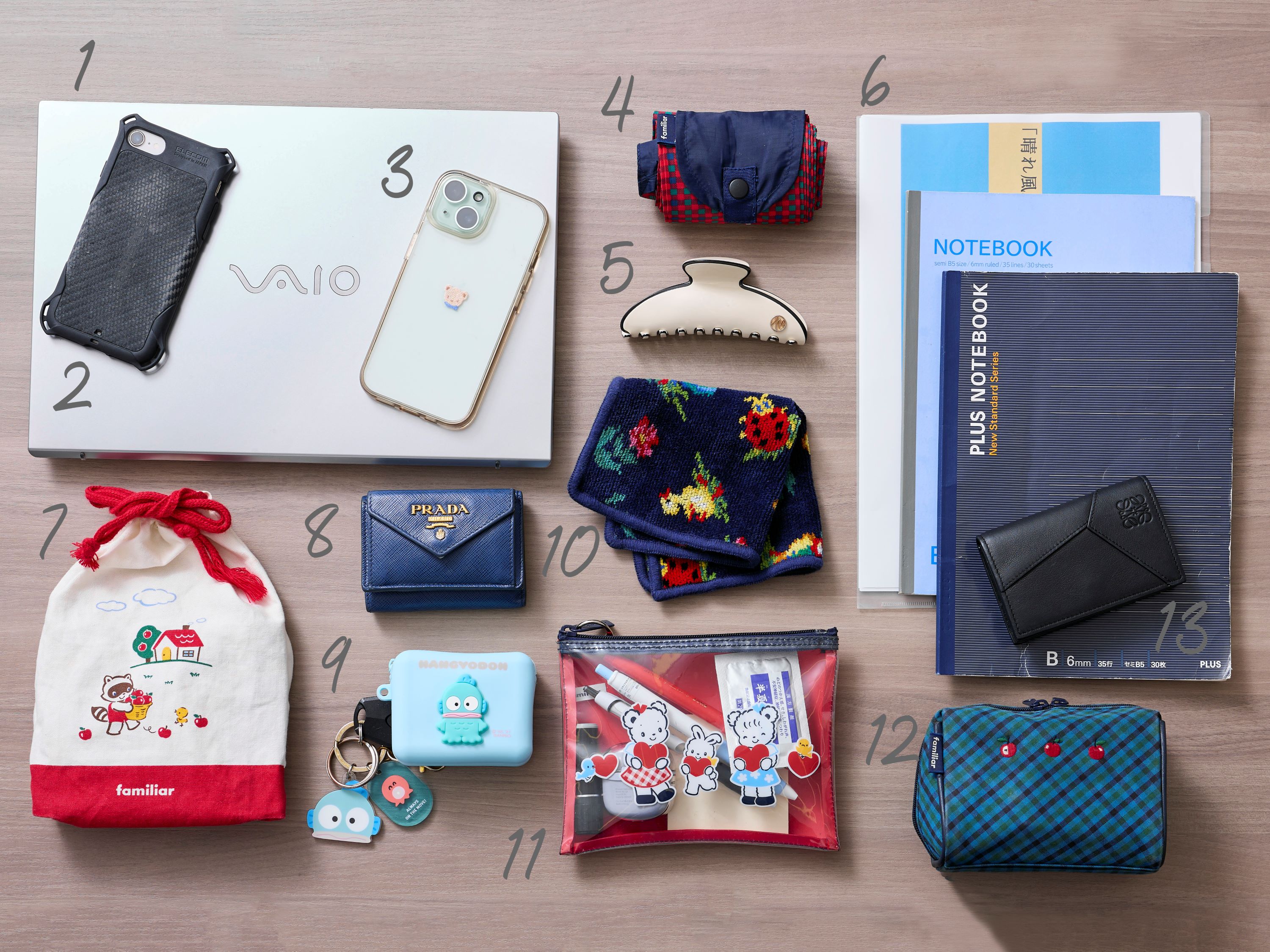 これだけ入っても「バッグは半分しか埋まっていない」というのだから、さすがのLongchamp。バッグの中はお仕事中の必需品から、忙しい村井さんを助けてくれるというサポートアイテムまで、いろいろ入っているのだそう。