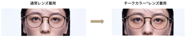 「チークカラー(R)レンズ」は、レンズの下部分にグラデーションを施すことで、頬に自然な血色感を与えるメイク効果を再現したレンズ。