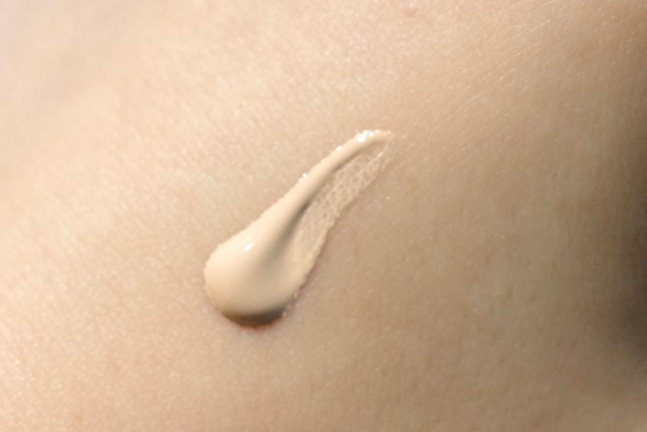 「ジュレリープファンデーション」は、米粒大ほどの少量で十分にカバーできるとのこと。点置きをしてから指で伸ばすだけで均一な生ツヤ肌に仕上がります。水越さんは「カバー力が高いですね。日常メイクならこれだけでもいいかも」と、カバー力の高さに感動した様子を見せました。