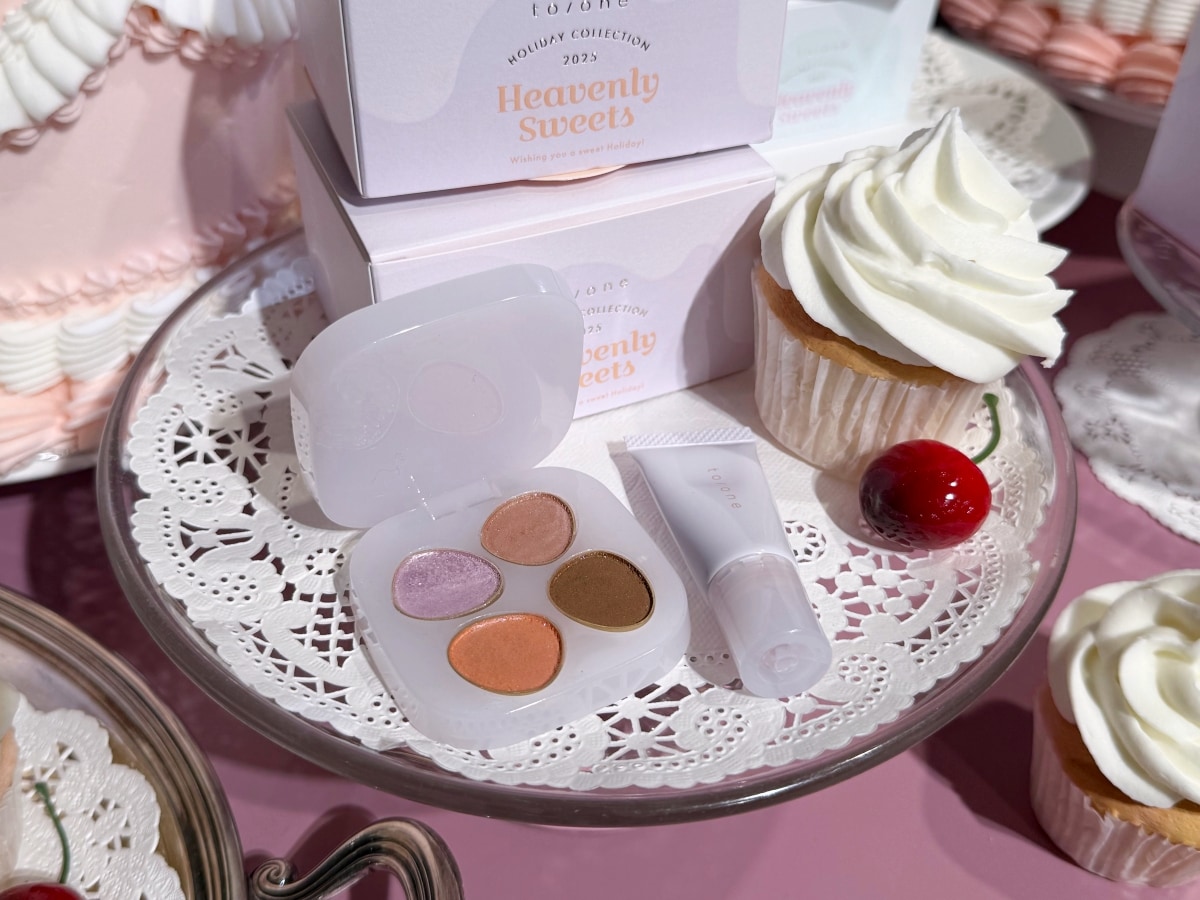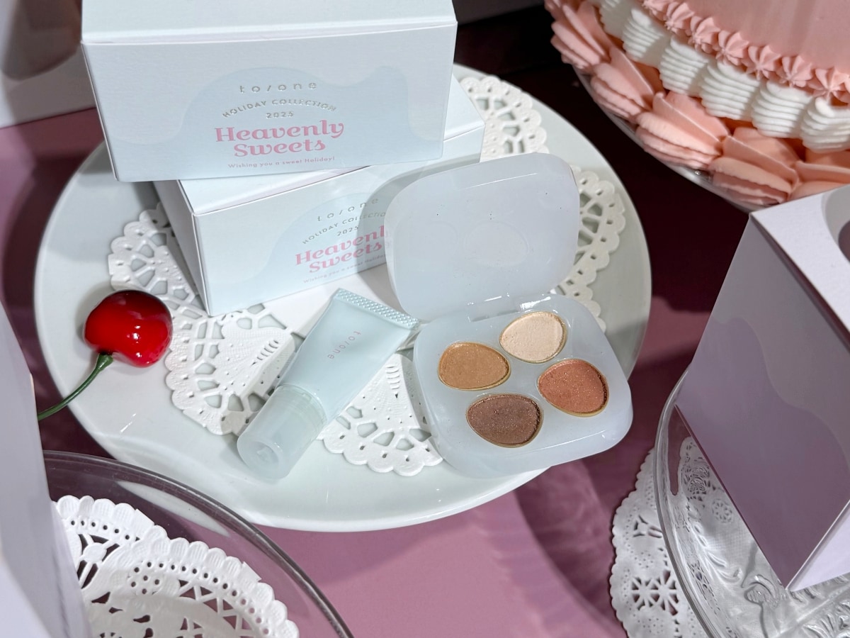 会場では、to/oneのホリデーコレクションがお披露目に。今年は「Heavenly Sweets」をテーマに、子どもの頃に夢見たスイーツの世界を表現したときめくコスメが並んでいました。