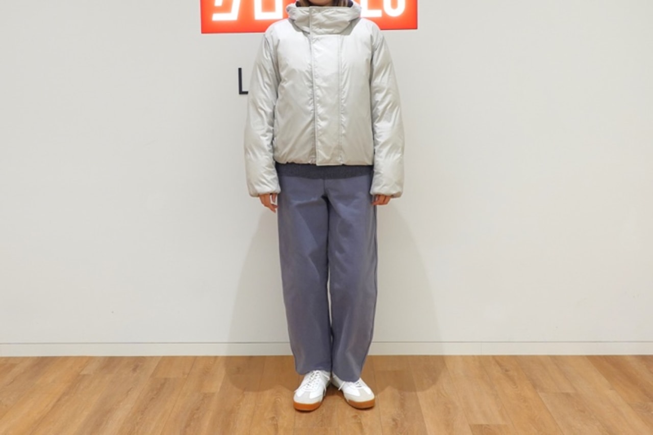 冬本番を迎えたら、もちもちとした肌触りが心地良く、保温性の高い「パフテックパーカ」を合わせれば、防寒対策もバッチリ。キルティングのないコクーンタイプのアウターなので、カジュアルからキレイめまでさまざまなコーデに合わせられます。
