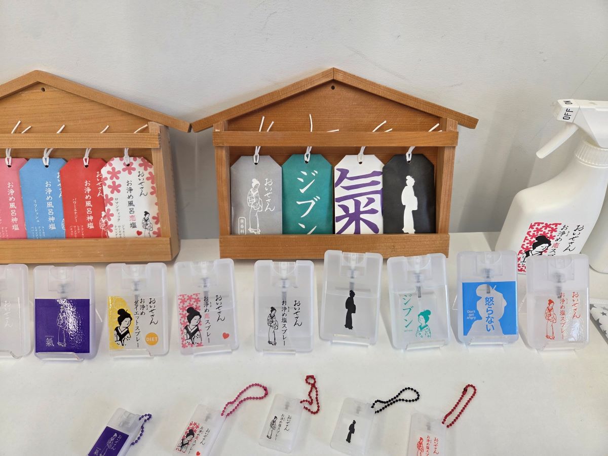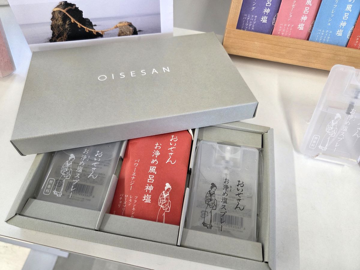 「おいせさん」はお浄めスプレーが代表的製品ですが、バスソルトやハンドクリーム、ご朱印帳をはじめとした文具や小物などのグッズも豊富に展開しています。