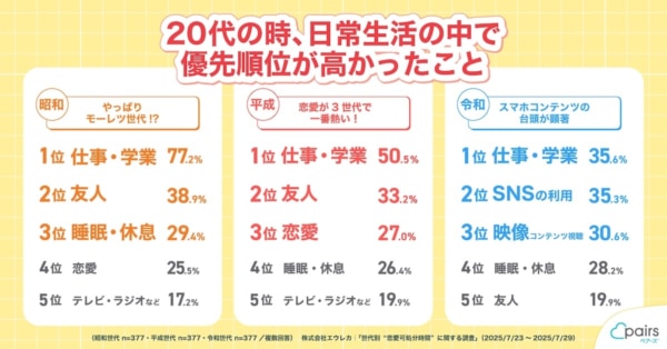 恋愛可処分時間と日常生活の優先順位の回答から見える昭和・平成・令和の違いは?