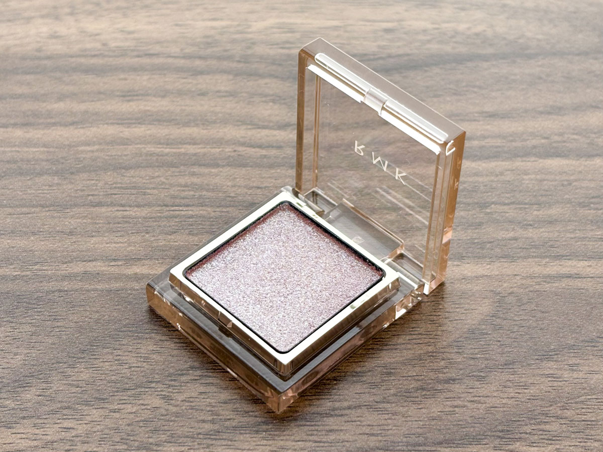 発光するようなきらめきからラメだと思っていましたが、公式によるとパールなんですね。ラメと錯覚してしまうくらい大粒で存在感がすごいんです。アイホールにとどまらず眉下まで大胆に広げても、やりすぎ感やいやらしさがない。これぞRMKの真骨頂。