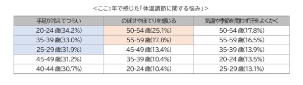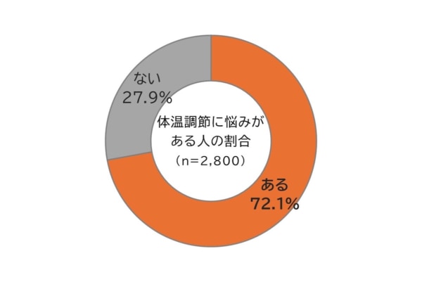 72.1%の人が「体温調節の悩み」を感じていることが明らかに