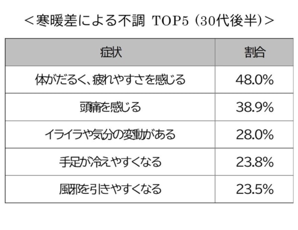 寒暖差による不調は30代後半が最も実感