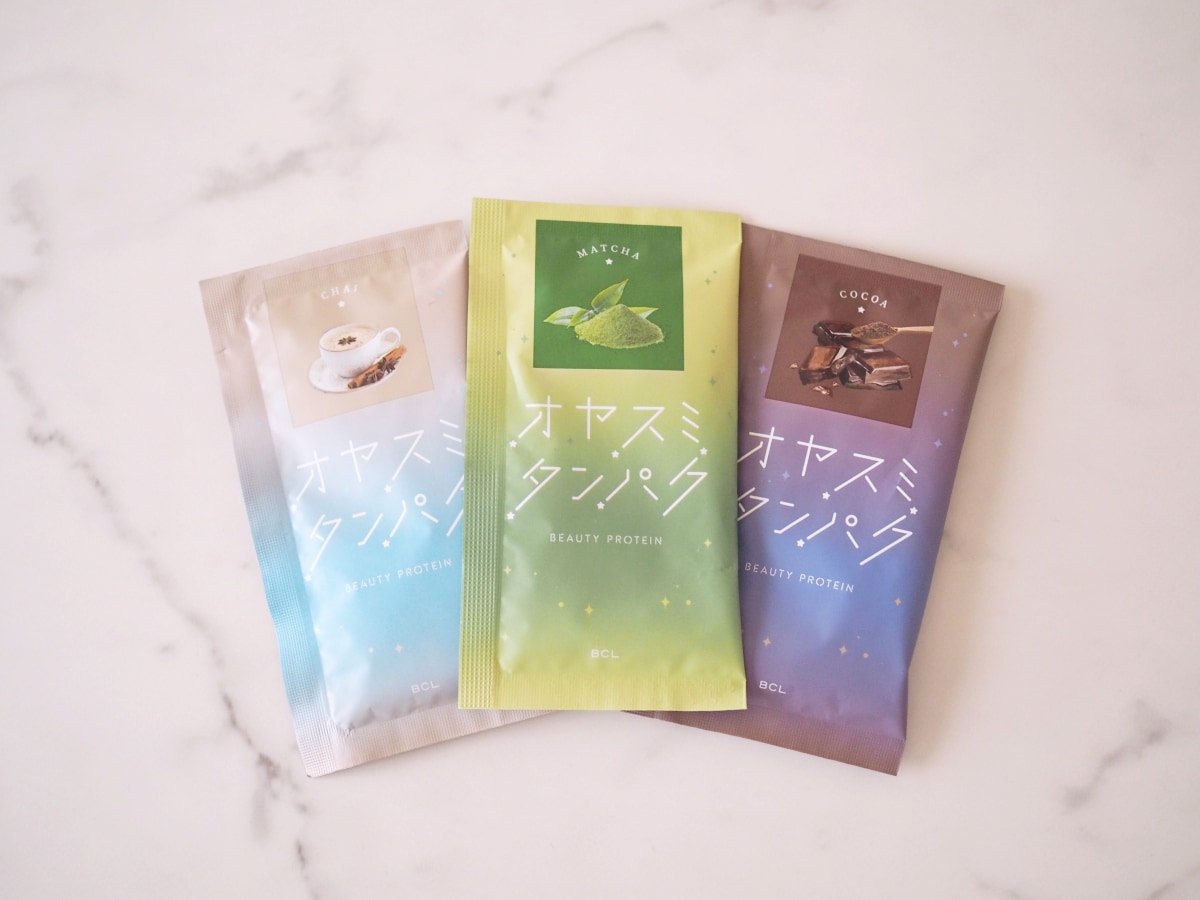 入浴後のスキンケアを終えたら、インナーケアとしてプロテインを摂取。「オヤスミタンパク」は、プロテイン(※1)に加え、成長ホルモンのもととなるアミノ酸や睡眠をサポートするGABAなどを配合。約100mLの水か牛乳で割るので寝る前にお腹がタポタポになる心配もないため愛飲しています。