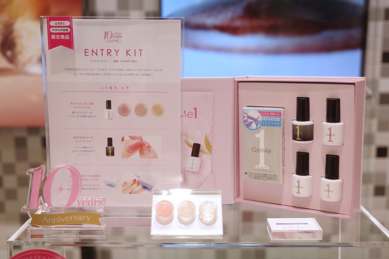 さらに、『ジェルミーワン』デビュー向けに、人気の定番カラー3色とぺりっとはがせるベースコート「GM57 はがせるベース」1本、そしてコンパクトな手のひらサイズの硬化用ライトをセットにした「エントリーキット」もPOPUP限定で販売されます。
