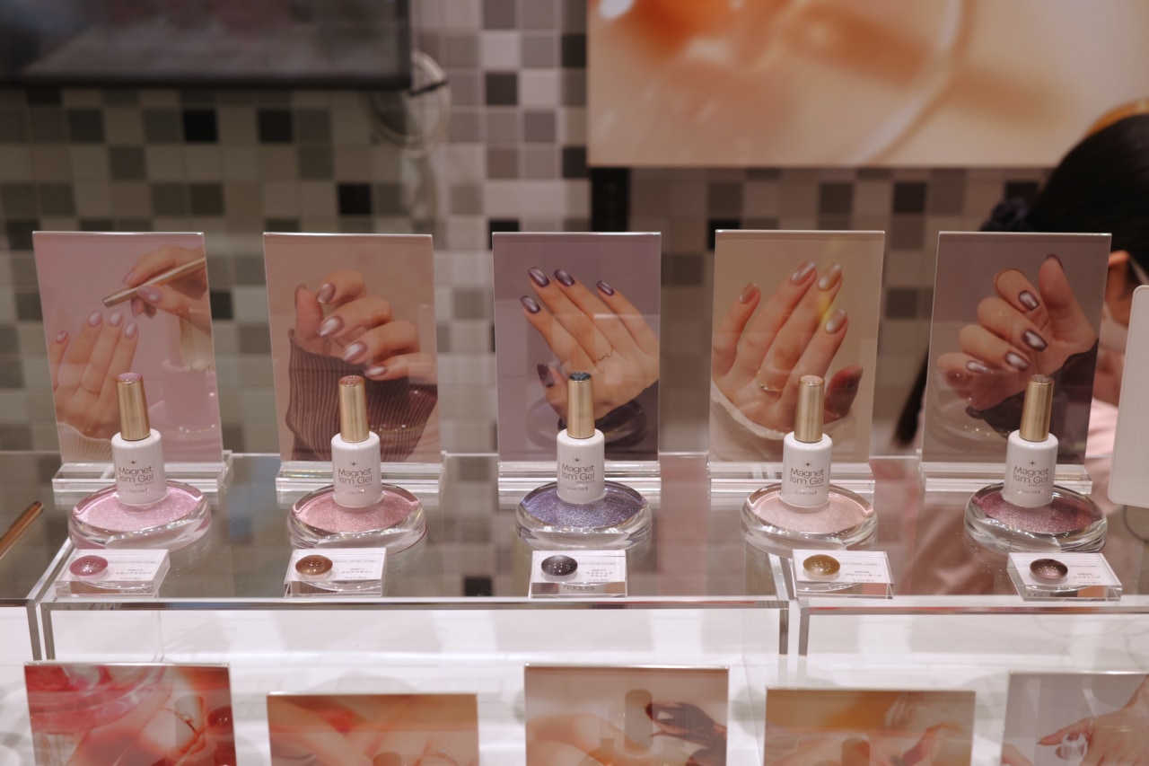 イベントスペースでは実際にネイルを試すことができるのだそう! 自爪に塗ることができない方向けにはクリアシートで色を見られるということで、「今は手元に塗ることができないけど、実際の色味が気になる」という方でも気軽に試せますよ。