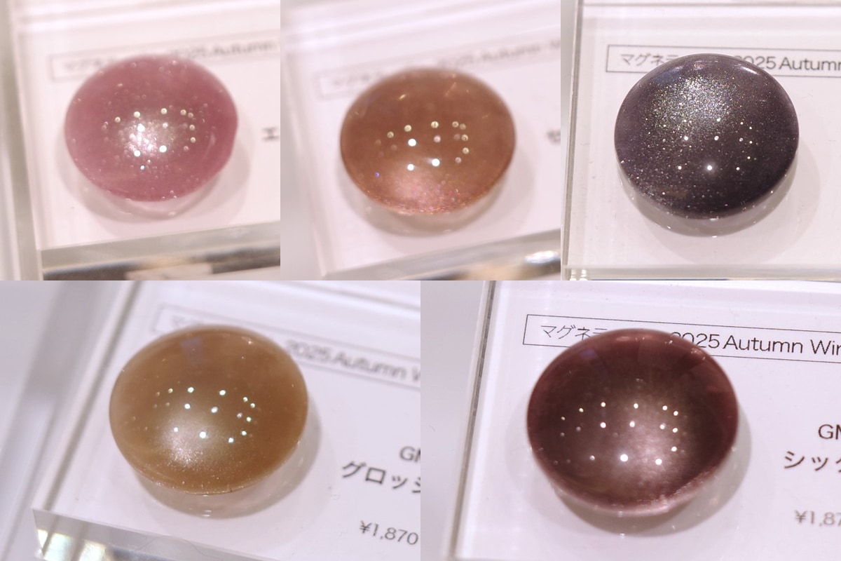 10月10日より先行販売されている『マグネティズム ジェル バイ ジェルミーワン』の秋新色もPOPUPに並んでいました。