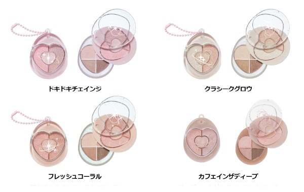 ピンクと淡いベージュカラーの「ドキドキチェインジ」、ベージュブラウンカラーの「クラシークグロウ」、肌なじみのよいコーラルカラーの「フレッシュコーラル」、ピンクベージュカラーによる「カフェインザディープ」の4種類を用意しました。