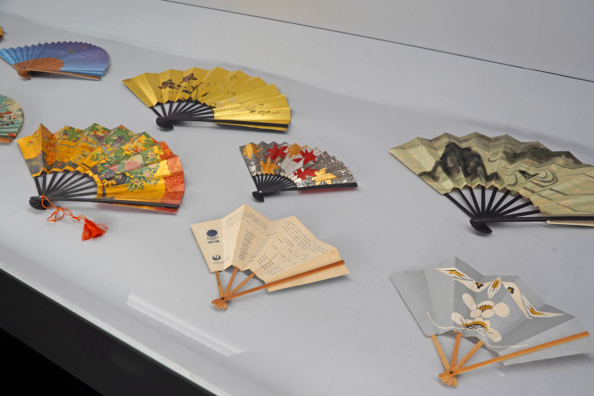 1950~1960年代には、外国人のお客さま向けに扇子を機内で配布していたそうです。きらびやかなデザインの裏側に、機内で販売するお酒のリストが記載されている扇子もありました!