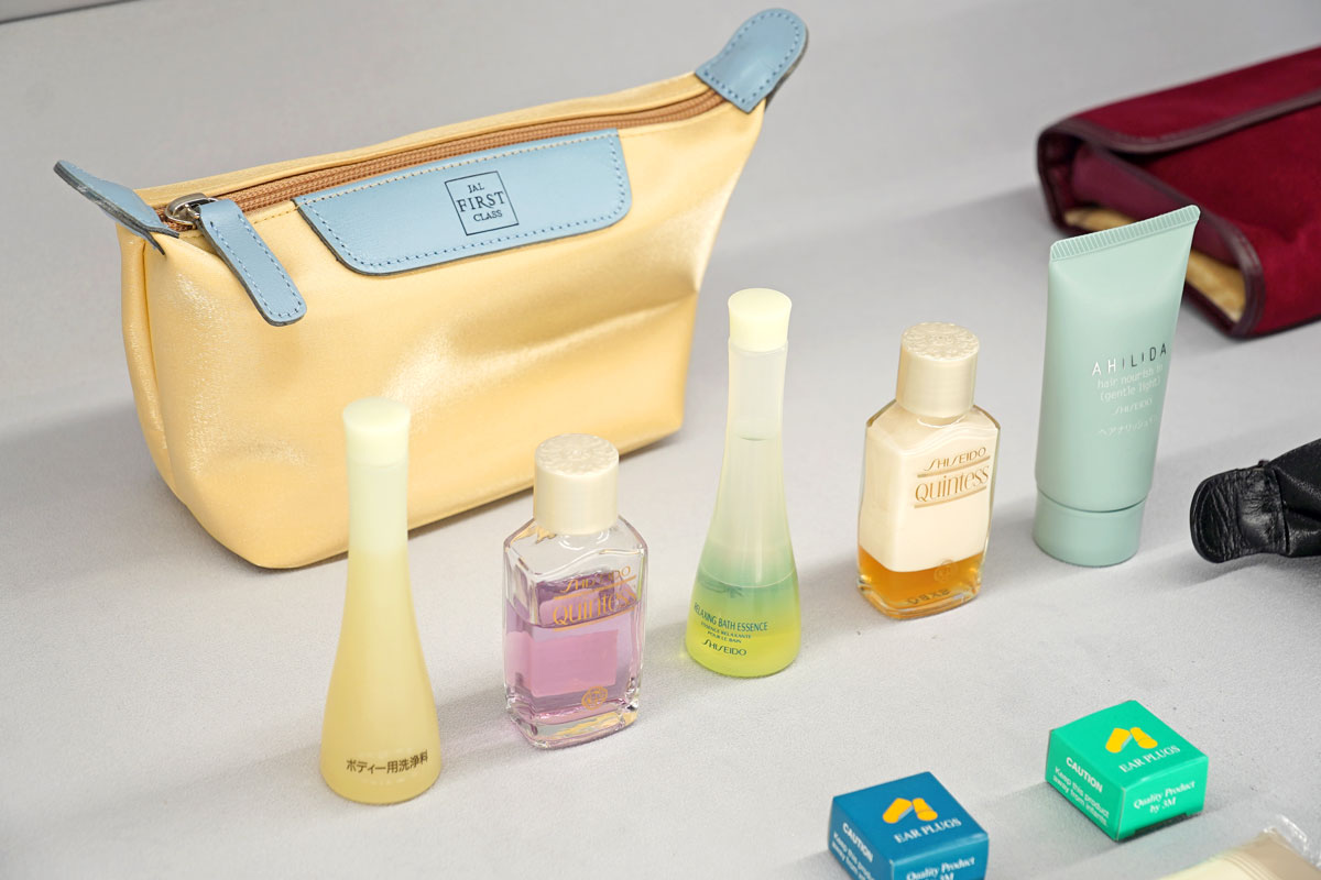 主に国際線のファーストクラスやビジネスクラスの機内で配られていたアメニティキットの現物も展示されています。