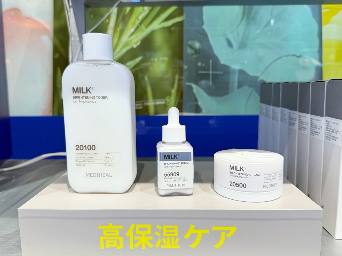また、乾燥が気になるこれからの季節に向けて、高保湿ケアをかなえる日本限定の「ミルクブライトニング」シリーズも展開されていました。