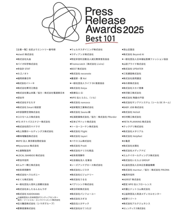「Best101」特設ページ:https://prtimes.jp/pressreleaseawards/2025/best101/