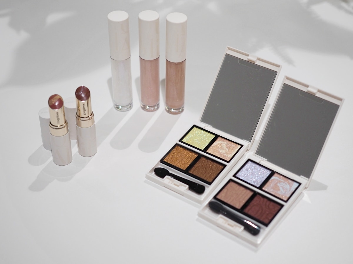 にしきおり:ここからは単品のアイテムを紹介していきます。今年で20周年を迎えたマキアージュから登場したのは、繊細な輝きのアクセントラメやマーブルが特徴的な「Bloom Collection」。特に気になったのは「マキアージュ カスタマイズアイカラー アソート EX2」。透明感と華やかさをプラスするライラックカラーに目がいったんですけど、マーブルの白みピンクカラーやそれにあった赤みブラウンも使いやすくて、オフィスメイクからパーティメイクまでかなえてくれるパレットです。