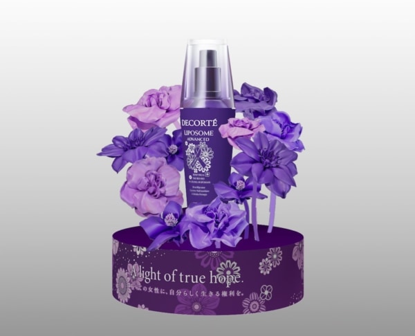 今年は新たに「DECORTÉ PURPLE RIBBON POP UP EVENT 2025」を開催。POP UP EVENTの会場は「女性に対する暴力をなくす運動(※3)」とブランドを代表する“リポソーム美容液”を象徴するパープルのカラーをテーマとした装飾で彩られています。東京・大阪を起点に多くの生活者にパープルリボンの活動を幅広く情報発信することで、社会課題の解決に貢献します。