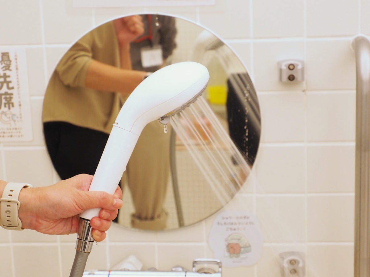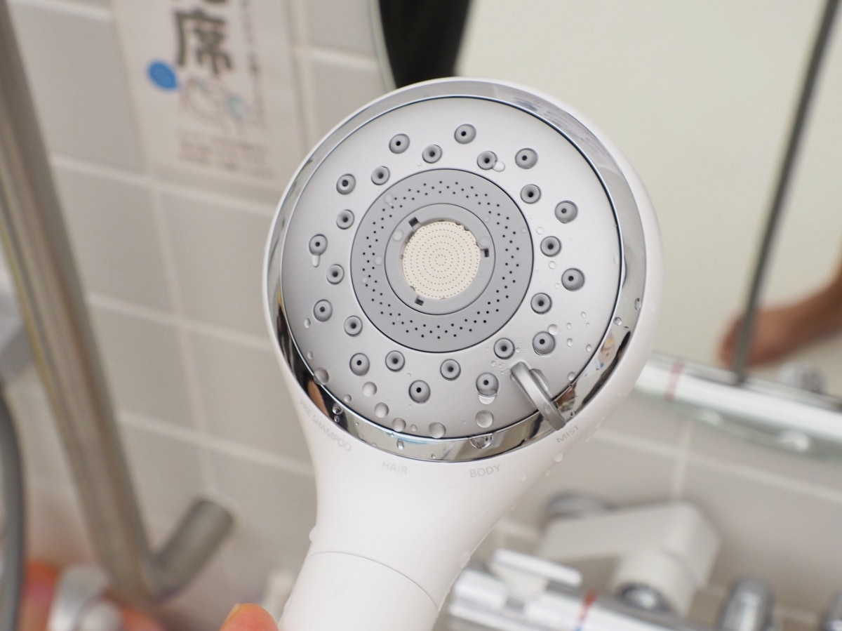 続いて、シャンプーやトリートメントのすすぎ時に適した「ヘアケアモード」に切り替えると、ファインバブルが含まれているのもあって「プレシャンプーモード」よりもやわらかい感触。中心部分の密集した水流の刺激からは爽快感を得られます。
