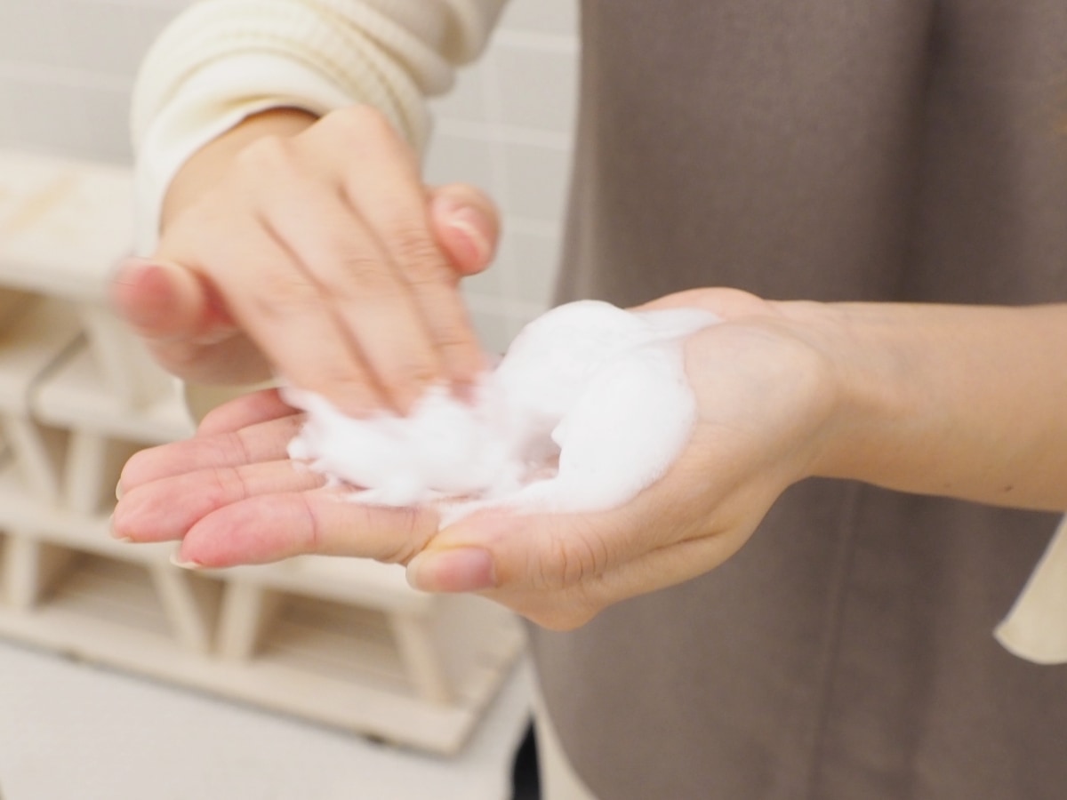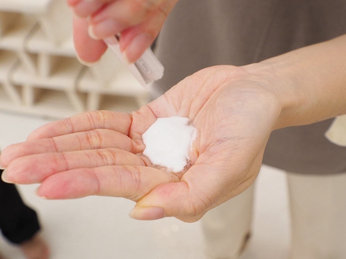 そこにシャンプーを加えて軽く混ぜると濃密な泡が完成! リニューアル前と比べて泡もち時間が200%にアップしたということもあり、よりもっちりとクリーミーな泡立ちを体感できました。