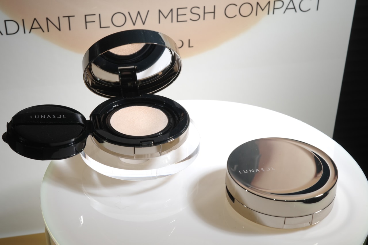 ジェル洗顔料と同日、ベースメイクラインからも新製品が1種登場。ルナソルで初となるメッシュ型コンパクトファンデーション「ルナソル ラディアントフロウ メッシュコンパクト」が発売されます。