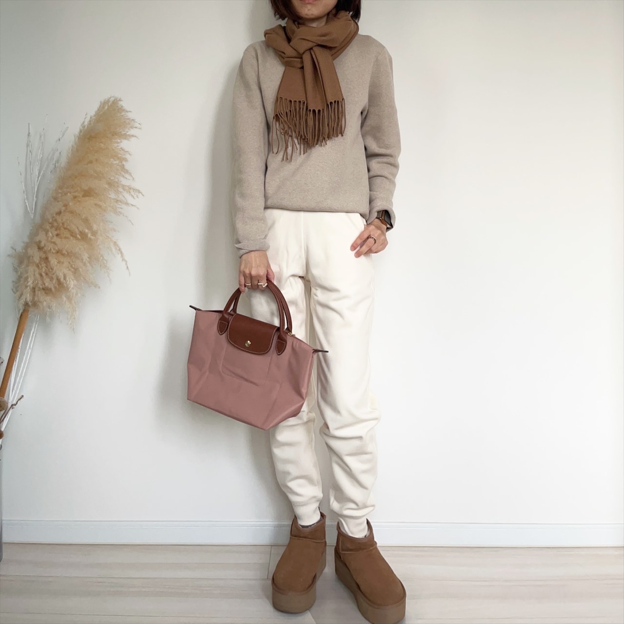 ボアスウェットパンツを取り入れた、この冬に着たい暖からくちんコーデを3つ紹介します。