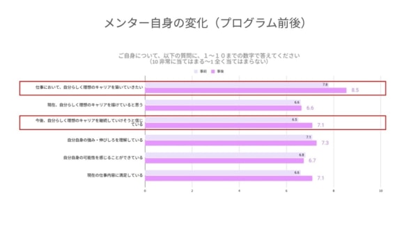 メンター側においても、プログラムを通じてキャリア意識や仕事への満足度が向上する結果となりました。