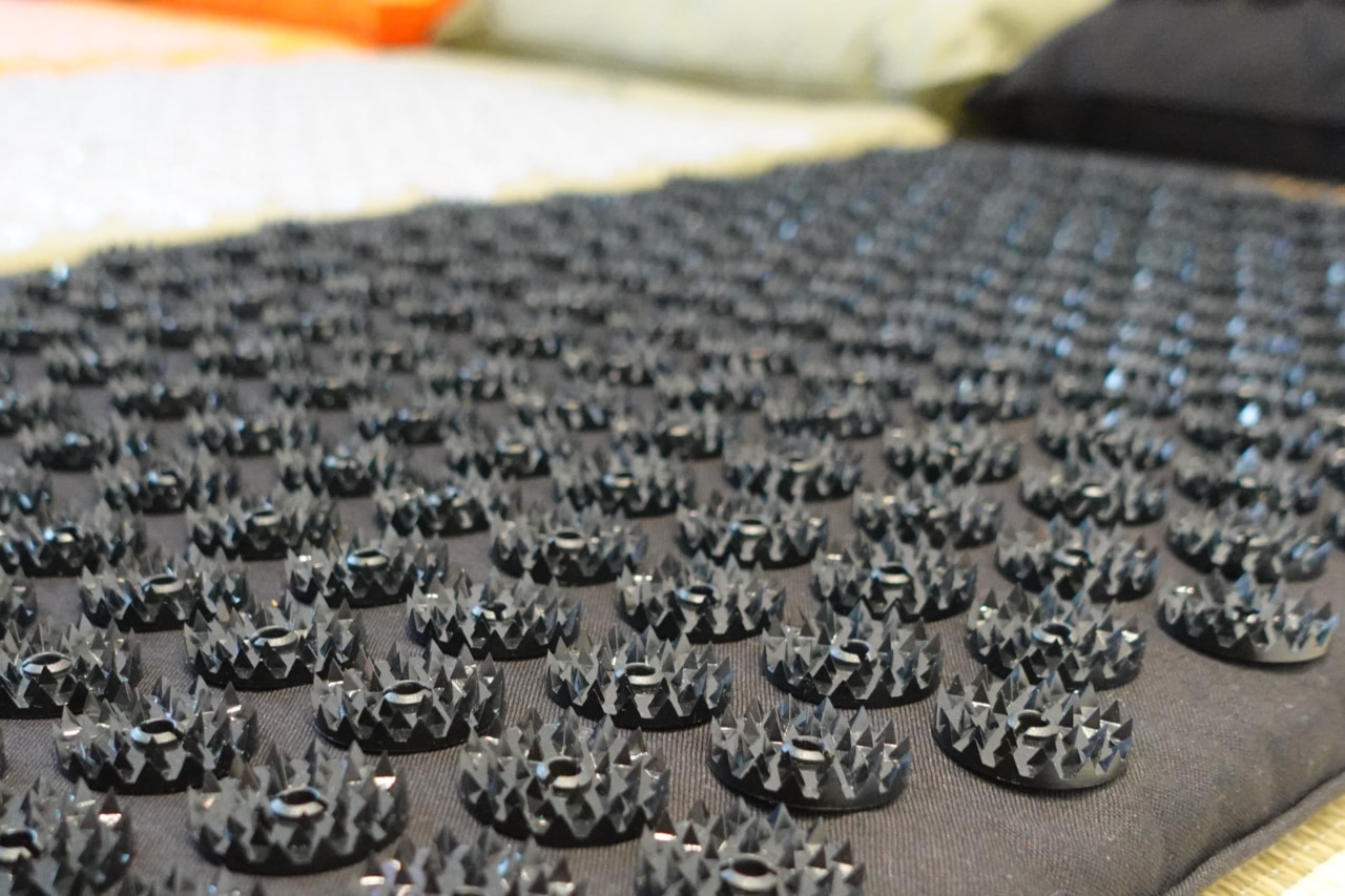 実際にマットを見てみると、全面にびっしり取り付けられたスパイクが鋭すぎてびっくり! 軽く手で触れただけでも刺さるような痛みを感じ、「今からこの上に寝転ぶなんて大丈夫?」と思わず心配になってしまいます。