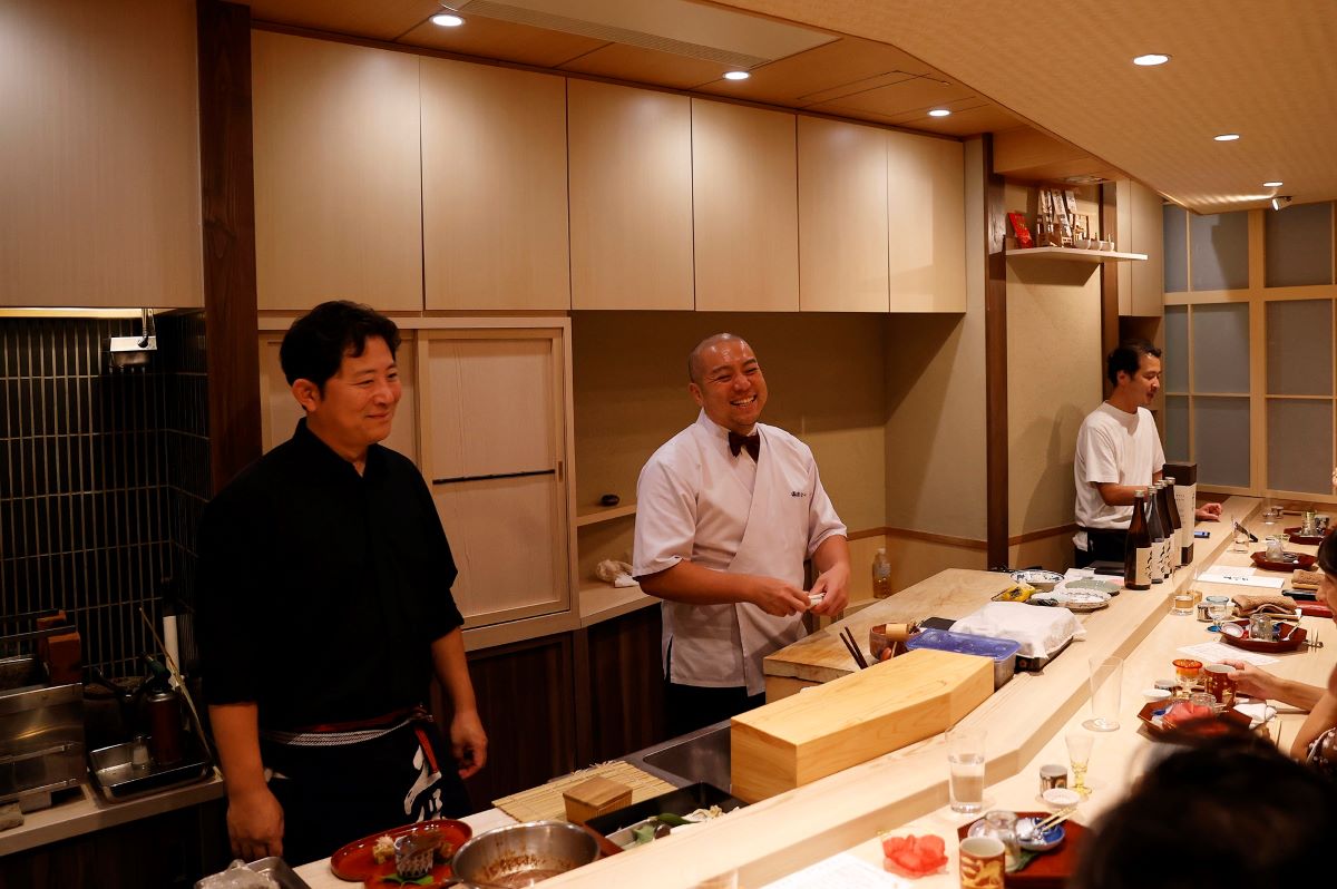 佐藤「お酒は「千寿 秋あがり」の燗冷ましを70度~55度くらいで提供しています。燗は温度が上がるときより下がるときの方が味に深みがでます。秋刀魚の味がとても強いので、熱々の燗よりも温度を下げた燗の方がつりあいます。海外の人は、あまりお酒を温めたりしないですよね。紹興酒を温めるのももともとは日本の文化ですから」