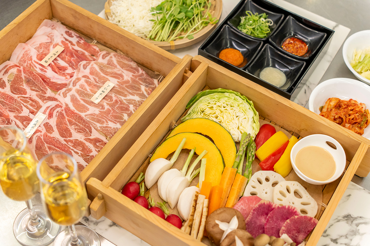 今回選んだのは「地産ブランド豚と高原野菜のせいろ蒸ししゃぶ」。下仁田ポーク・上州もち豚・赤城ポークと、群馬のブランド肉を3種類食べ比べできます。ジューシーなブランド豚はどれもおいしく、さらに驚いたのは高原野菜のおいしさ! 嬬恋高原で育った甘みの強いキャベツや信州産のきのこなどを、バーニャカウダソースをつけて堪能しました。