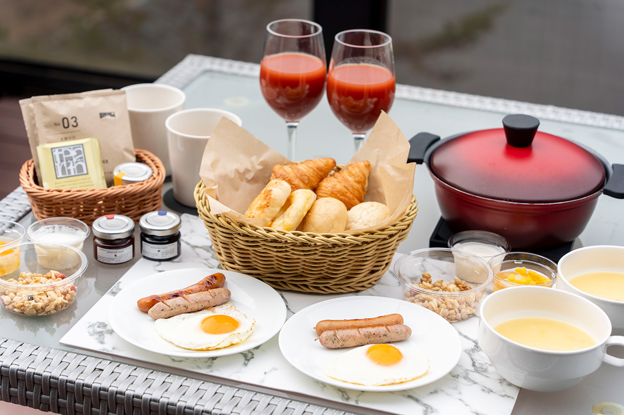 高原の卵や軽井沢のウインナーに舌鼓。テラスで味わう、絶景朝食