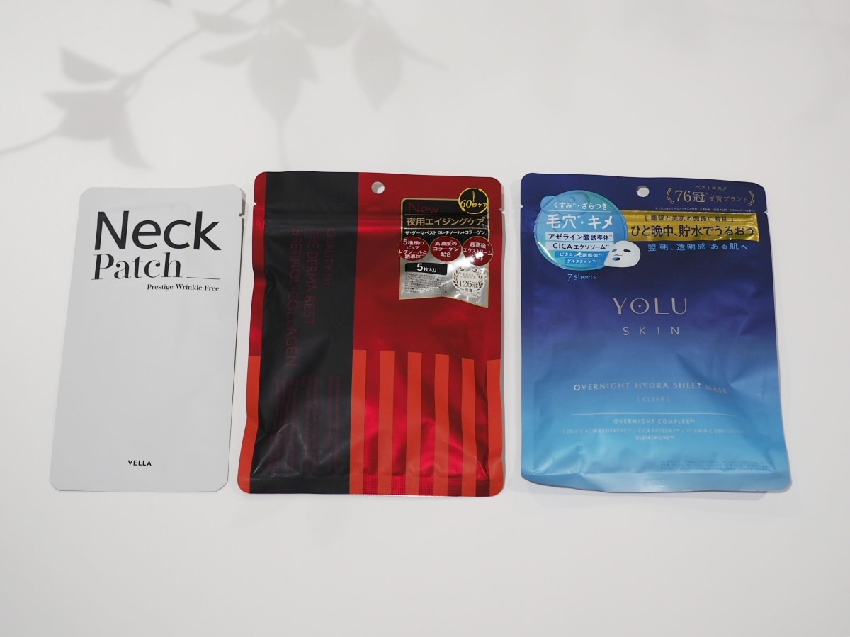よしかわ:与えるケアは、時短でいかにリッチなケアができるかっていうアイテムがそろいましたね。私が夜のスキンケアで一番初めに使うのが、ベラの「プレステージ ネックパッチ」。ネックケアができる湿布のようなシートになっていて、まずこれを貼ってから、7in1の雪肌精の「薬用雪肌精 ブライトニング マルチ ジェル【医薬部外品】」を全顔にたっぷりと塗っています。