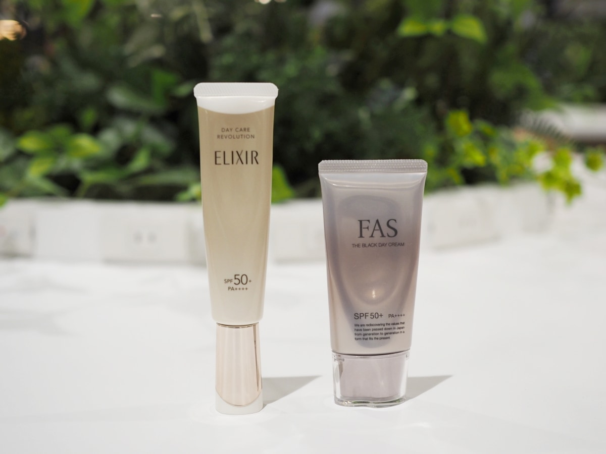 よしかわ:さっぱりと使えて、でもしっとりするので、しっかりと肌になじませたらエリクシールの「デーケアレボリューション ブライトニング + ba」で乳液と日焼け止めそして化粧下地まで済ませて完成です。