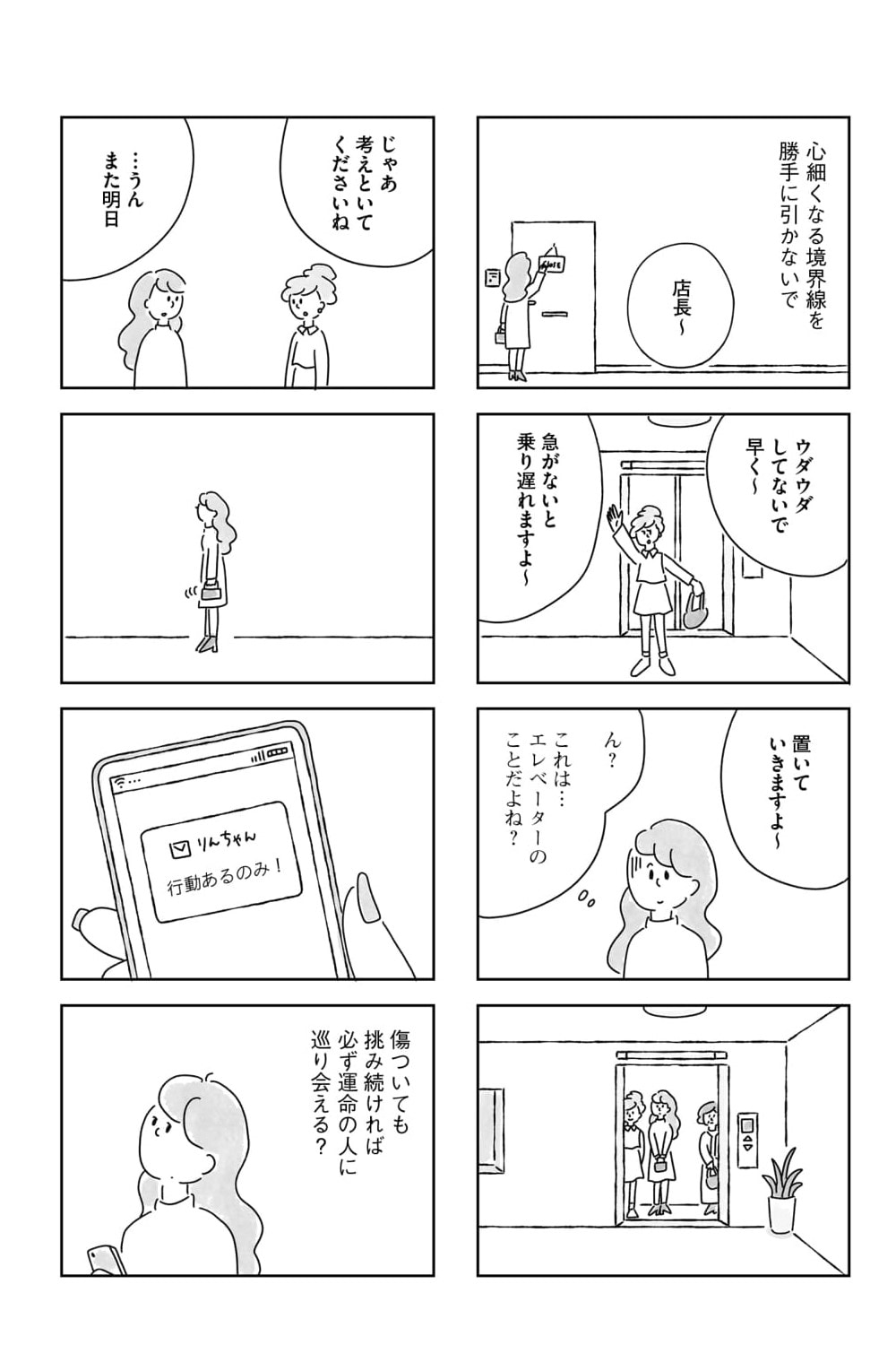 紹介を断ったこのみに、「どうして会うこともせず判断するんですか?」と後輩からのまっすぐな喝が入ります。このみは一歩を踏み出せるのでしょうか。