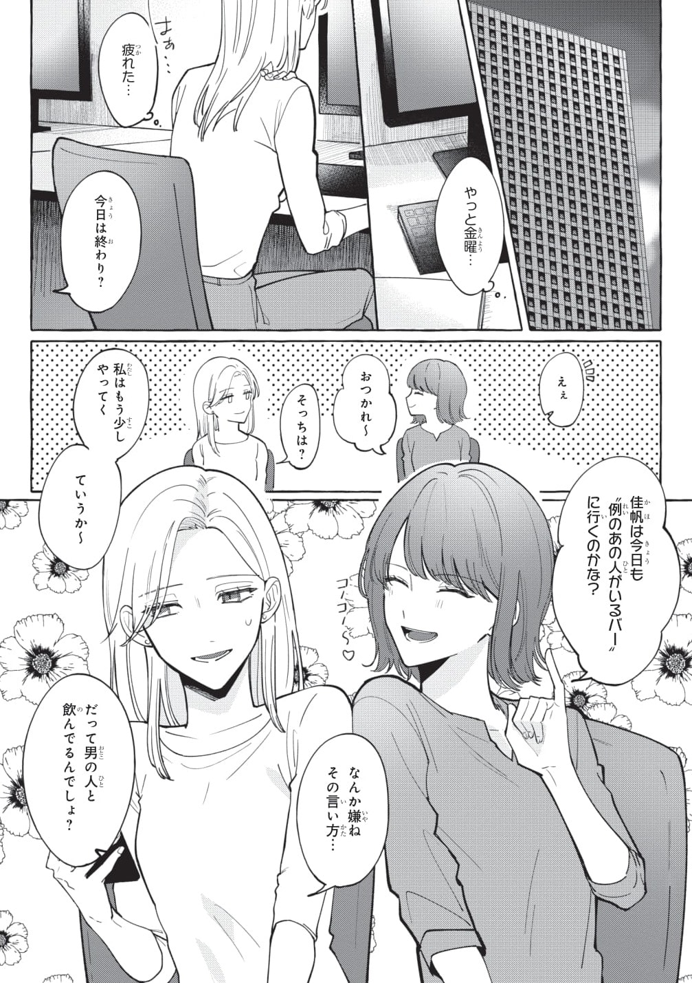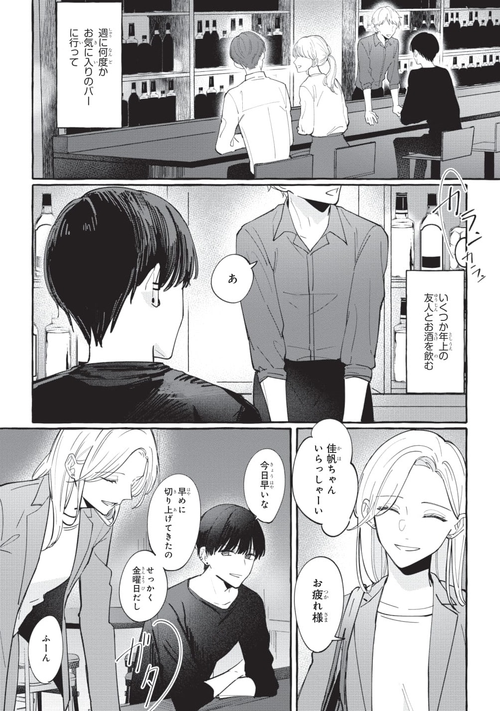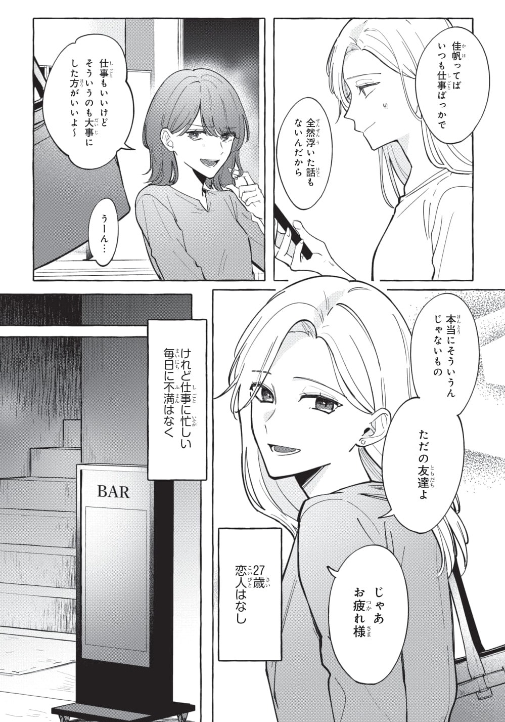 毎日仕事に追われるバリキャリ女性・佳帆の楽しみは、バーである男性と飲みながら気兼ねなく話すこと。そんな気を遣わずいい友だち関係だった二人だが、ある日一線を越えてしまい……。