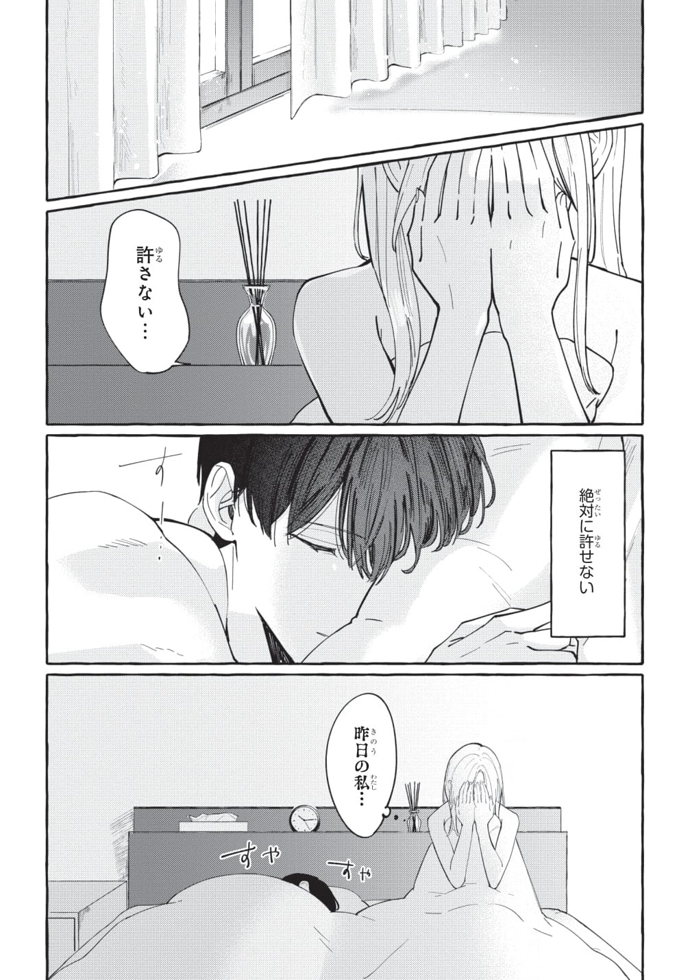 毎日仕事で忙しいOL・佳帆の唯一の楽しみは、バーで知り合った泰(あきら)という男とお酒を交わしながら気兼ねなく話すこと。三十路で童顔な泰だが、酒・煙草・女遊びも激しくクズ要素は満載。でも、友人としては良い関係を築けているはずだった……あの夜、一線を越えるまでは。