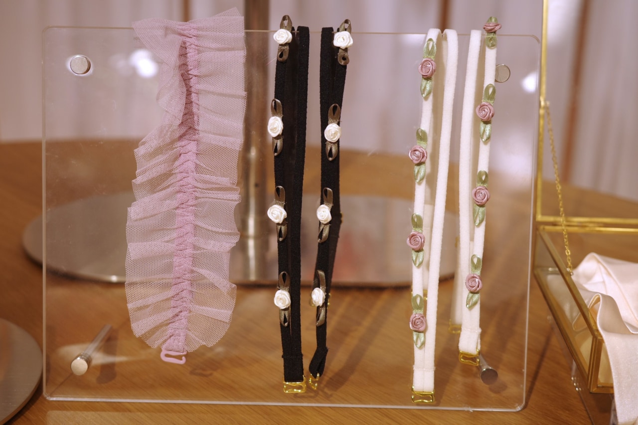 ローズモチーフがついた繊細なデザインから、コーディネートのアクセントになってくれそうな大胆なリボンデザインまで幅広く展開。今期から付け替えストラップ対応になった「夢みるブラ®ノンワイヤー エアリー」と併せるのがおすすめです。