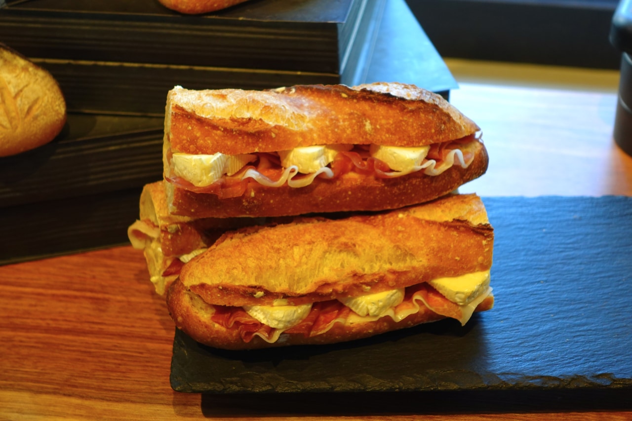 分厚いカマンベールと生ハムもしっかりと存在感があり、シンプルな構成なのにとても重厚感のあるバゲットサンドです。