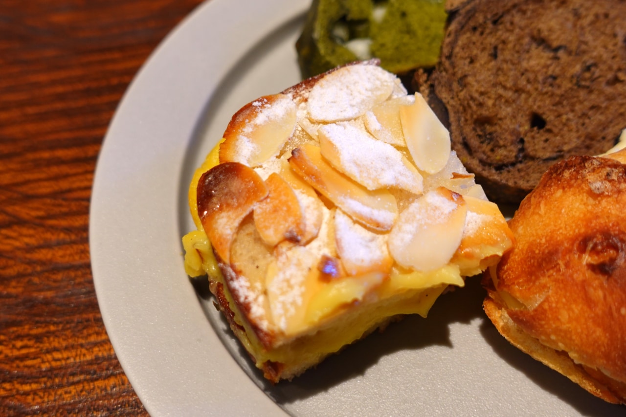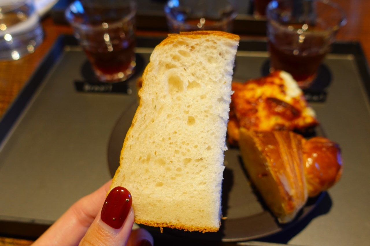 「本日の」という名の通り、シェフの気まぐれでパンの種類が変わるのだとか。来るたびに異なる味を楽しめるなんて、毎日通っていろいろな味を食べ比べしたくなってしまいそう……! 試食させていただいたのは、人気食パン「桜と日本酒」で作られたクリームパン。ふわふわのパンと米粉を使用した自家製カスタードの甘さがマッチした一品でした。