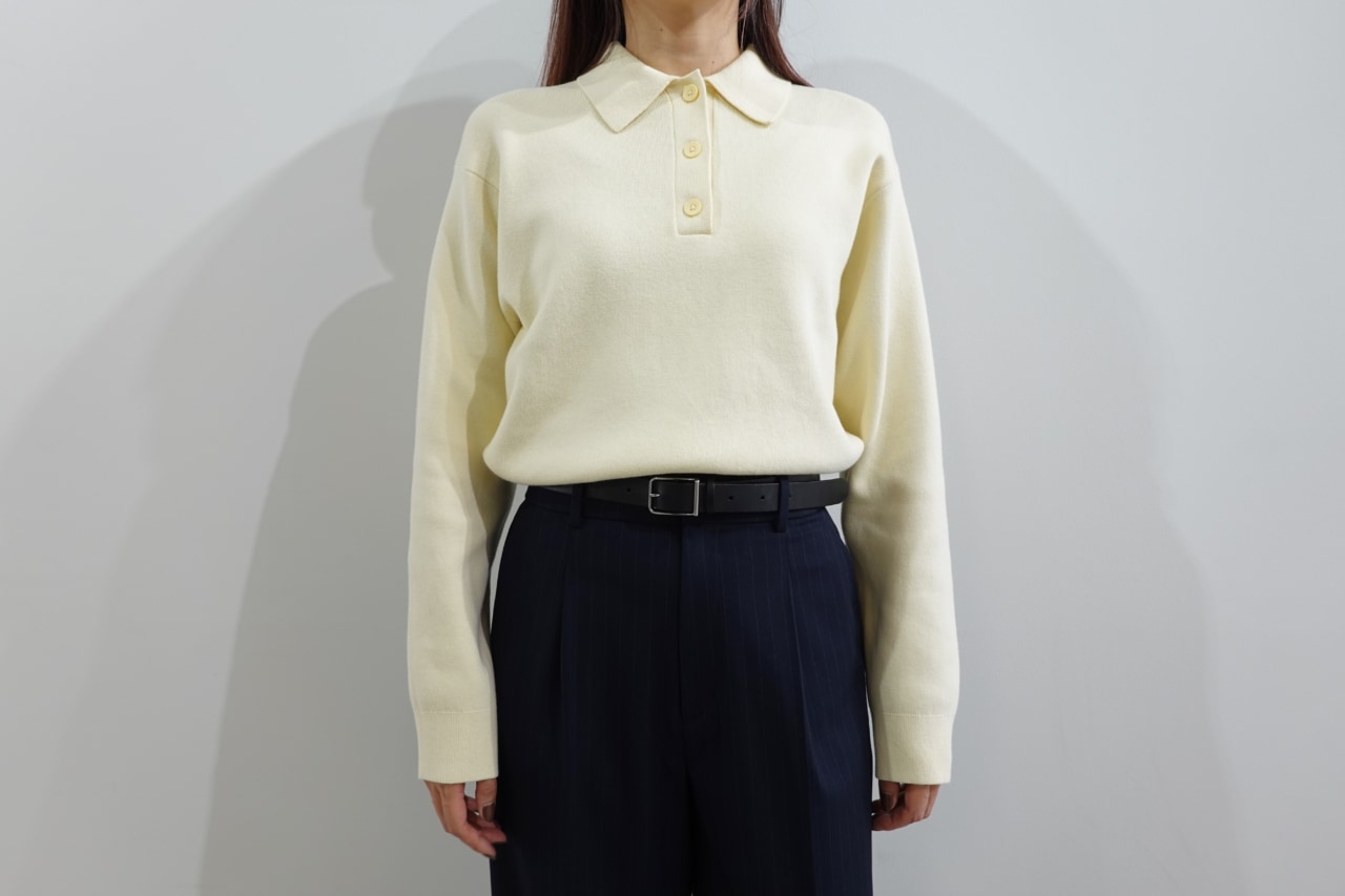 筆者が一番気に入ったのは、一枚でさまになる「スムースコットンポロセーター」です。やわらかく肌触りの良いコットン100%素材で、春先はインナーなしでも心地良く着れそう! 襟にはボタンが並び、すっきりとした首元を演出してくれます。