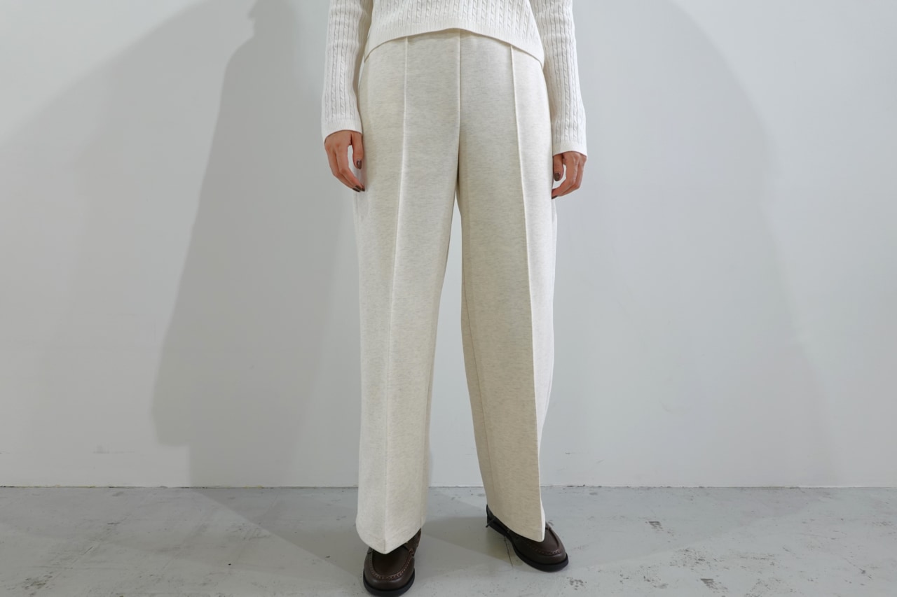ボトムスに選んだのは、UNIQLO : Cから登場する「スウェットストレートパンツ」。表面には適度なハリ感があり、センターラインもあることからスウェットとは思えないキレイめな印象をプラスしてくれます。とはいえ、履き心地はスウェットならではのラフさなので、これは話題になりそうな予感!